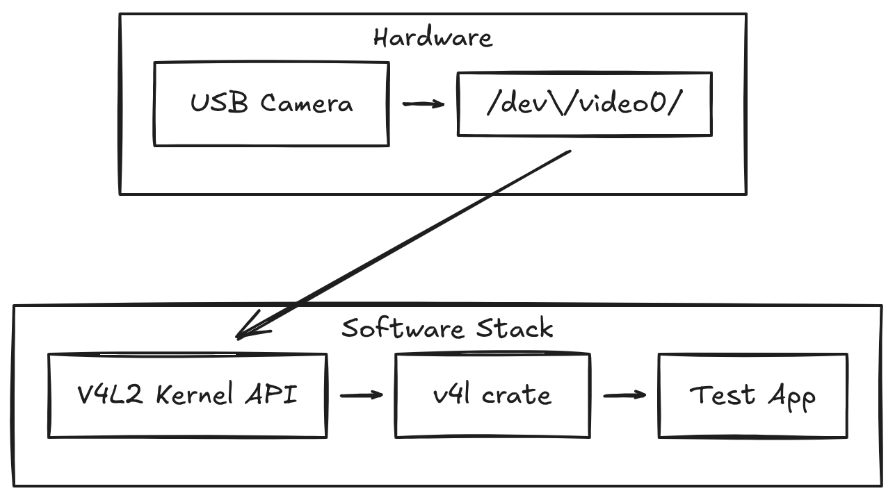 To start, it makes sense to use something as small as possible while still reflecting real conditions. A minimal Rust application that reads frames from a USB V4L2 camera is enough for that. The intention at this stage is not to build a full pipeline, but to establish a stable baseline for CI and cross-compilation. A simple capture loop is sufficient to surface most toolchain issues early, long before higher-level pipeline logic enters the picture.